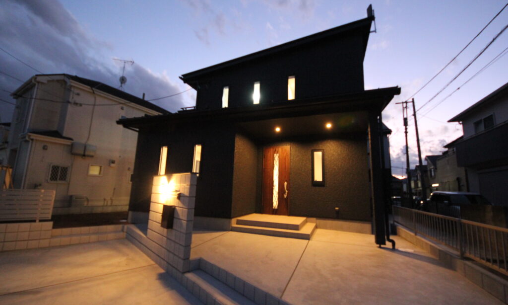 施工のポイント:奥様ご希望のブラックの外壁にその他の外装や部材もとことん黒で攻めてみました!